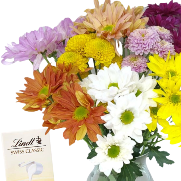 Arranjo de Flores Mistas com Chocolate Lindt Swiss Classic