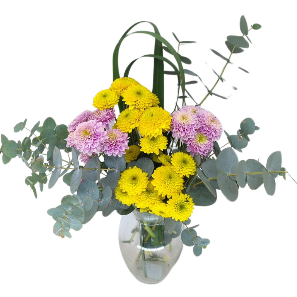 Arranjo no Vaso de Vidro - Margaridas Bicolor